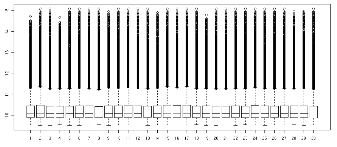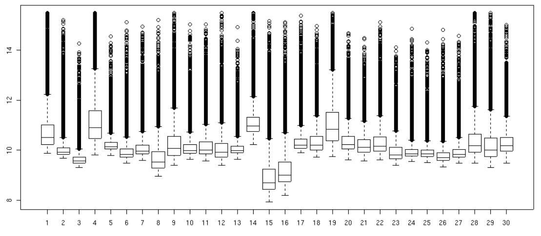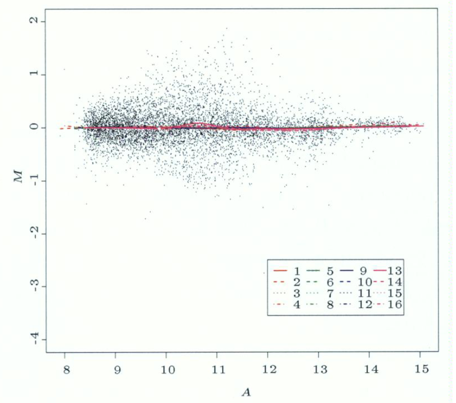 \[ \log_2 PM_{ij} = \mu_i + \alpha_j + \epsilon_{ij} \]