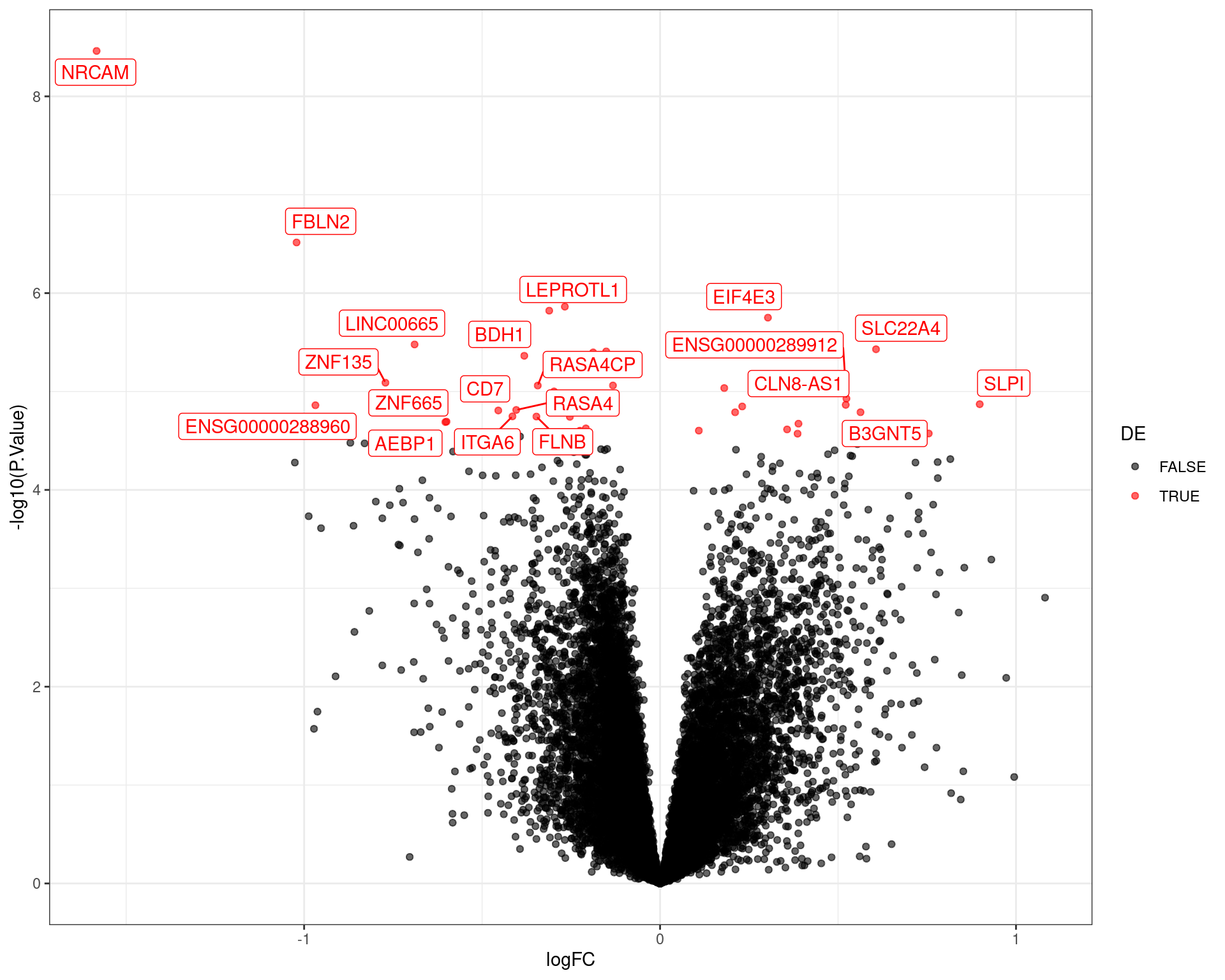 logFC AveExpr t P.Value adj.P.Val B