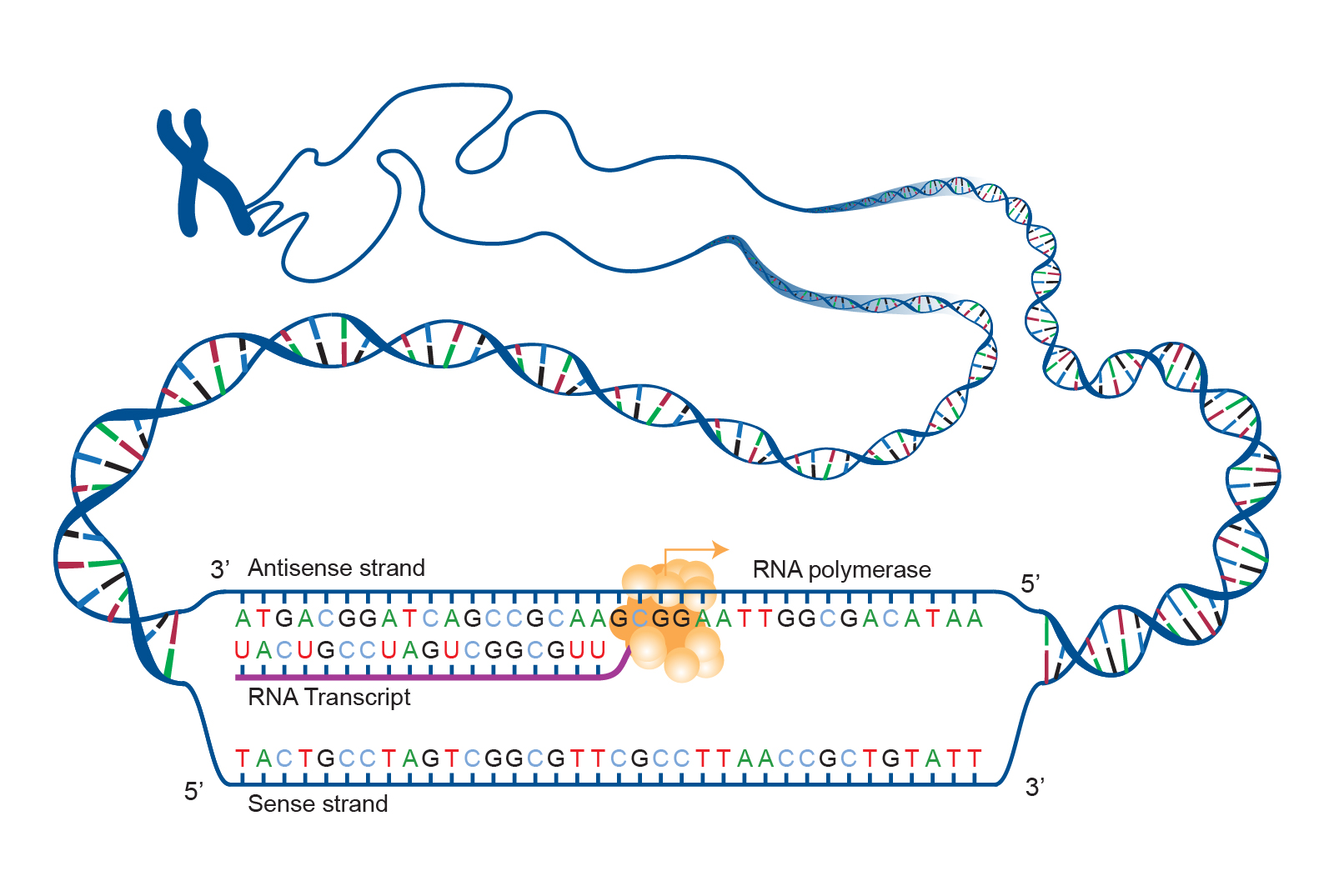 Transcription is the process of making an RNA copy of a gene sequence
